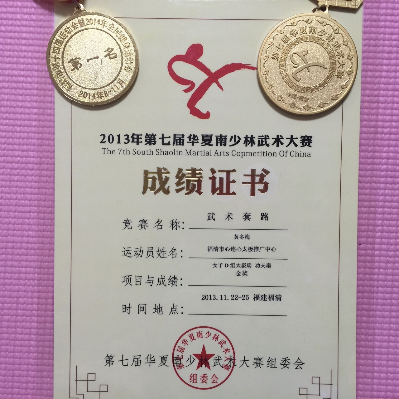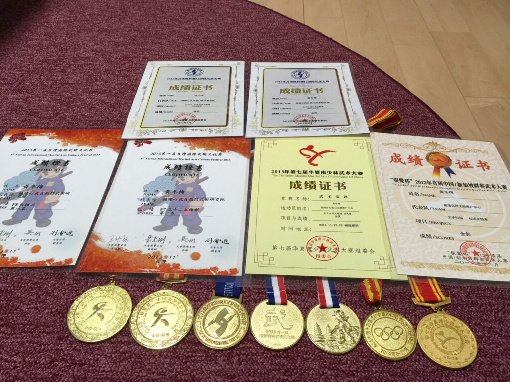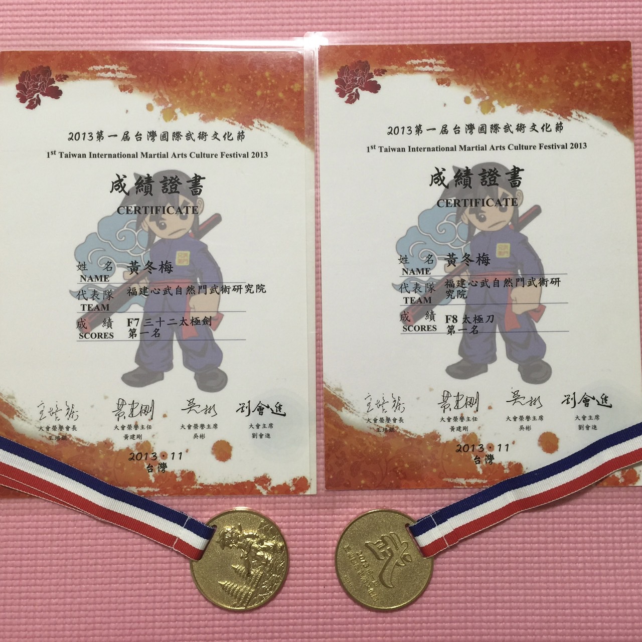 2013年、台湾国際武術文化祭で太極剣と太極刀部門で優勝した。同年、第7回中国南少林武術大会で太極拳扇で金賞を受賞。